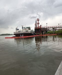 Utvrđeno je da se evro-dizel izlio u količini od 82 kubna metra, i da je izlivena nafta sakupljena u zaštitnoj barijeri oko barže.