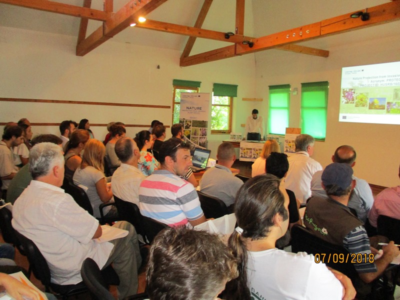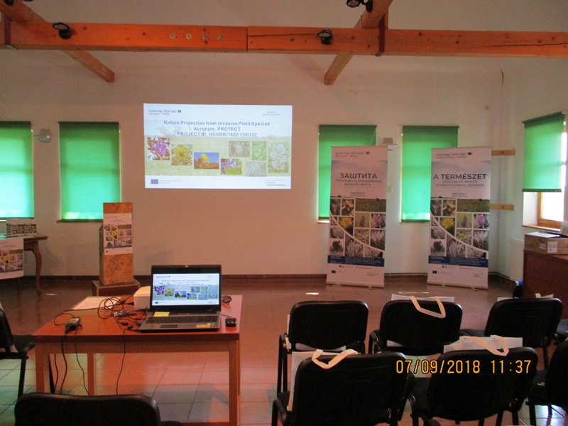 На семинару су говорили Немања Ерцег, в.д. помоћника покрајинског секретара и менаџер пројекта, који је упознао присутне са циљем пројекта, активностима и очекиваним резултатима. Професор Полош Ендре са Универзитета Џон вон Нојман упознао је присутне са проблемом инвазивних врста у Републици Мађасткој и начинима њиховог сузбијања. Тамаш Винко презентовао је резултате мапирања и мониторинга инвазивних врста у пројектном подручју на територији општина Суботица и Кањижа и то у специјалним резерватима природе: Селевењске пустаре и Лудашко језеро, као и парку природе Палић и пределу изузетних